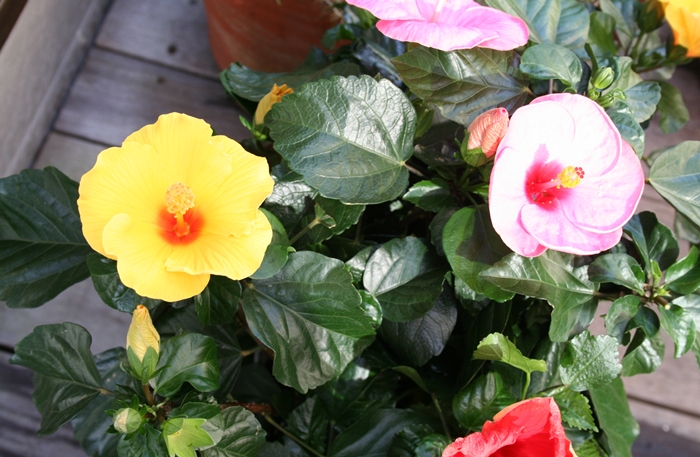 夏の初めに頂いたハイビスカスの花が、毎日花を咲かせてくれる。