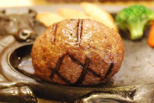 熱い鉄板の上の置かれたハンバーグは、そのうちにミディアムレアーに焼かれる。