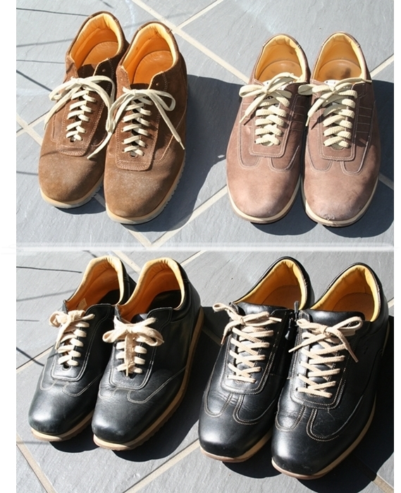 左のスニーカーは、ビトンの靴を造っている事で有名な「サントーニ」製。