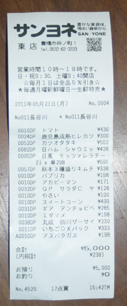 テッシュ、トイレットペーパー、洗剤から始まり、ビール、お茶(1,8LX6)、スイカ、そうめん、扇風機、そして目玉は、折りたたみ自転車2台。(総数100種)