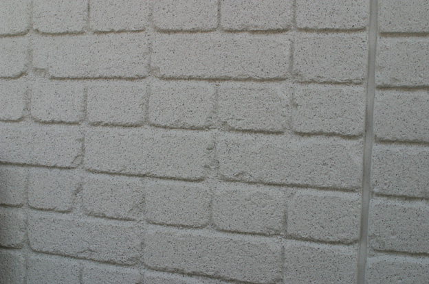 我が家の外壁。セキスイハウスのダインコンクリート、「古レンガ模様」。