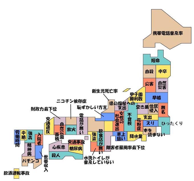 この地図、都道府県の日本一の出来事なのだそうです。