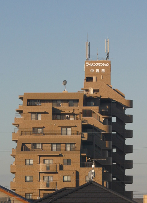 我が家のデッキに出て西の方角を見ると、ライオンズマンションが見える。