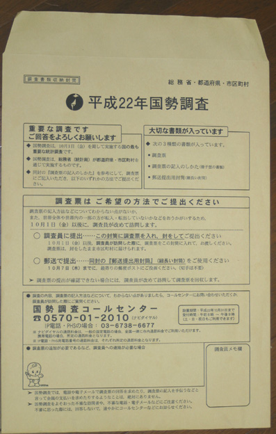 前もって「9月の末から国勢調査が始まります」というペラを各家庭にポストインしておいたのだが、、、
