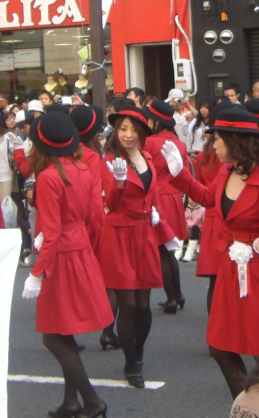 で、豊橋まつりのクイーンに選ばれた各町内の女性達が踊っていた。