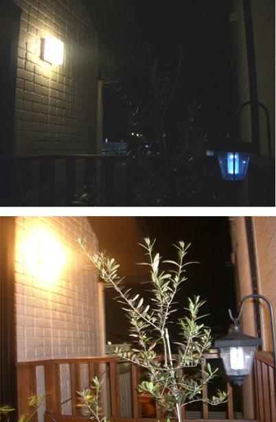 先日、デッキでタバコを吸っていた所、屋外灯を写真に撮りたくなった。