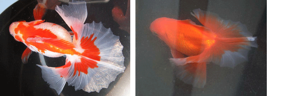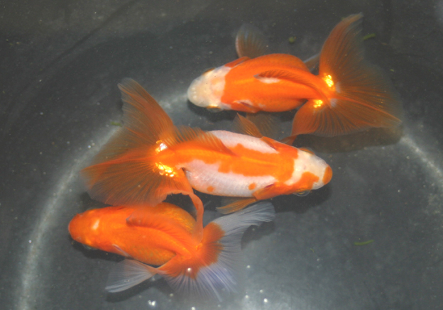 水替えを終え、嬉しそうに泳ぎ回るらんちゅう達。