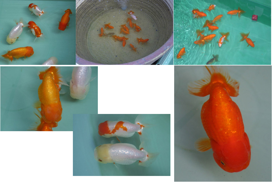 親らんちゅうの他、3年目を迎える品評会クラスのらんちゅう(全国大会で上位に入賞する位のらんちゅうの子供です)8匹。