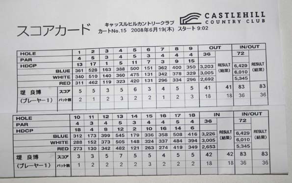 丁度2年前に同じコースを回った時アップしたスコアカードの写真が残っていた。