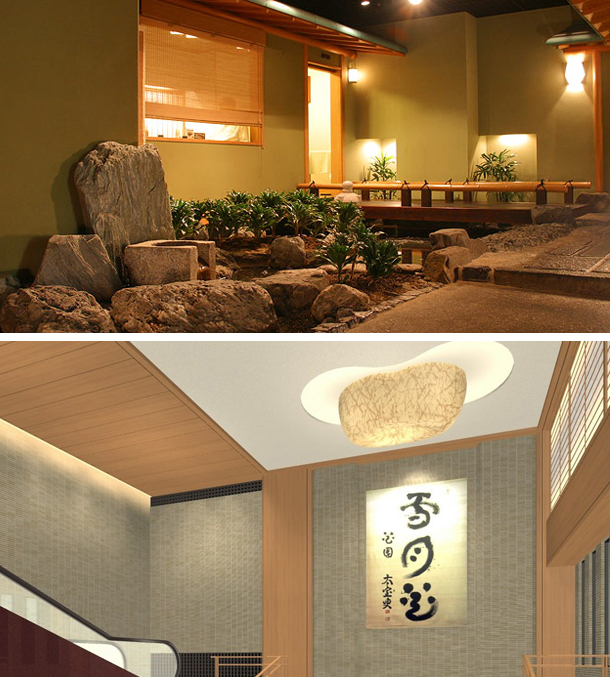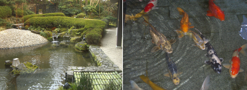 ロービーは、その池と繋がっており池の鯉が来客を出迎える。