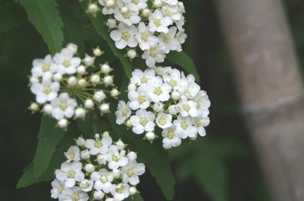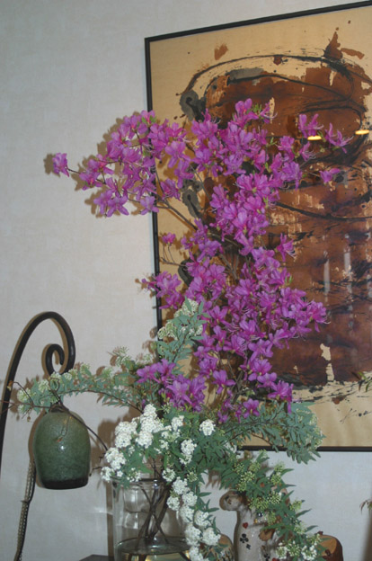 玄関先に飾った「ミヤマツツジ」と「コデマリ」。
