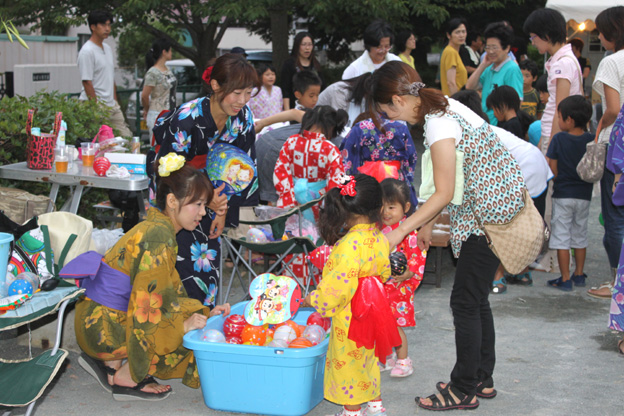 左の浴衣姿のお二人は、今年の子ども会の役員さん。