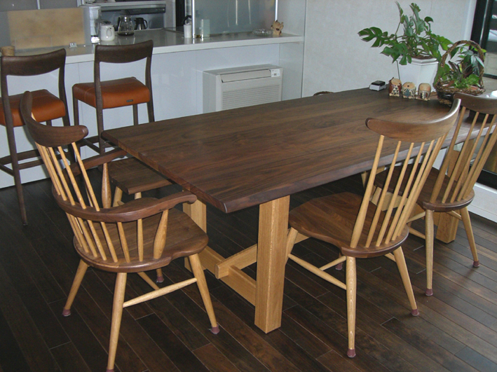 我が家はウォルナット材が好きで、息子の部屋の床、商談室のテーブル、時計、テイッシュ入れに至るまでこの材を使った小物を愛用している。