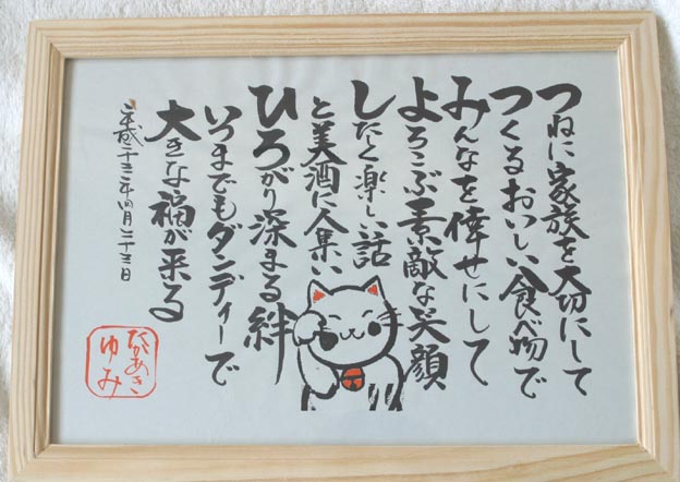 今日の写真は、披露宴の最中、サプライズでプレゼントされた色紙。