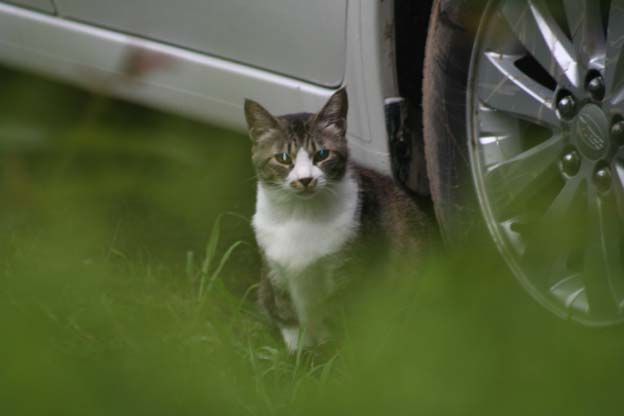 どこかの飼い猫なのだろうか、はたまた放浪の旅に出ている野良ちゃんなのか・・・。