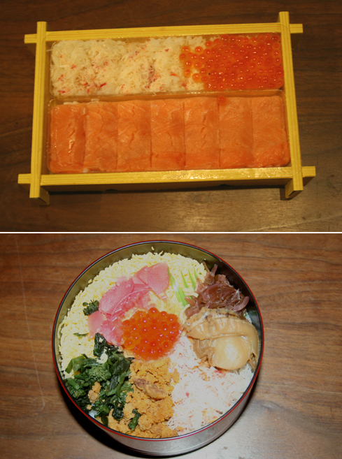 チョコボは、上の蟹ちらし、いくら、鮭の押し寿司を食べた。