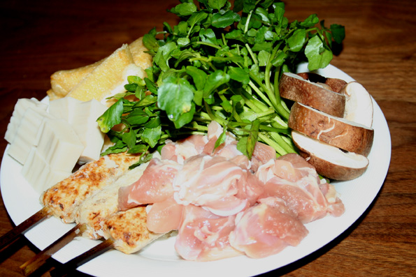 具材は、三河赤鶏の腿肉、鶏つくね、椎茸、油揚げ、生麩、極め付けは、クレソン。