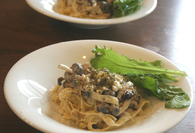 今朝のブログに書いたように、本日の昼食は「しめじのクリームパスタ(フィットチーネ)」。