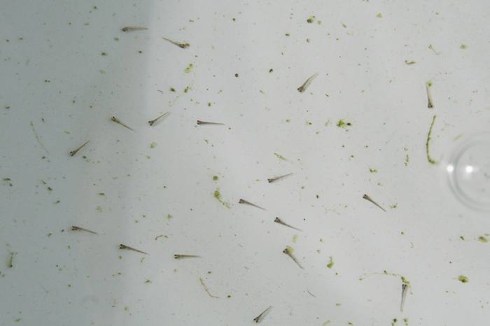 昨日、一昨日と孵化した土佐金の稚魚達。