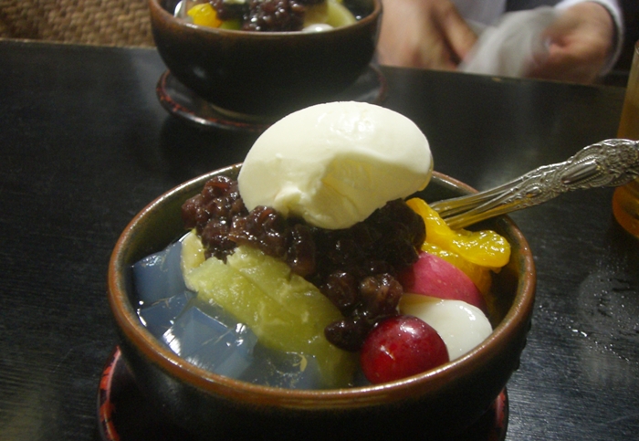 さすがに名物のかき氷を食べずに「クリームフルーツあんみつ」にした。