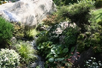山田町にあるタワーマンションの一階を店舗とし、庭は滝と言うか渓流が模されていて壮観な造り。