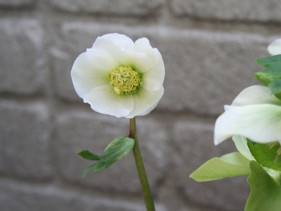 デッキと、アプローチに咲いたクリスマスローズ。