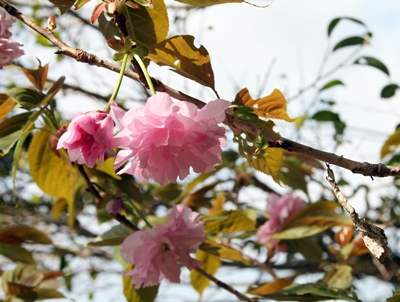 三ケ日桜は、八重桜の一種で開花も遅いと聞いていたので、来週あたりが満開かな?などと思いながら行ったのだが、なんと、、、今年の開花は早かったらしく、もう葉桜になりかかっていた。。