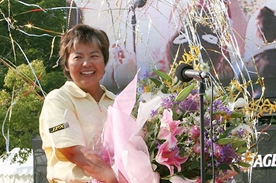 樋口、青木に続きゴルフ殿堂入りを果たし、先週優勝した森田理香子等を率いる岡本綾子。