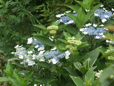 お局は一般的に咲いているアジサイよりも、この山アジサイが好きなようだ。