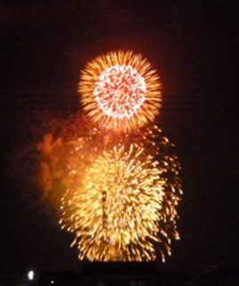 決して”百花繚乱”と言う花火ではないが、定期的に上がる単発の花火も又オツな物。