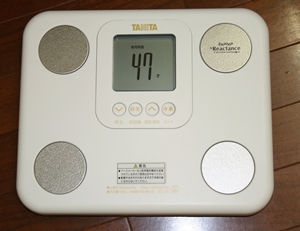なんと47歳と出た。(そう言えば、以前スポーツジムに行った時にも体内年齢が若いですね、と言われた事があった。同じような機械で測定したのだろう)