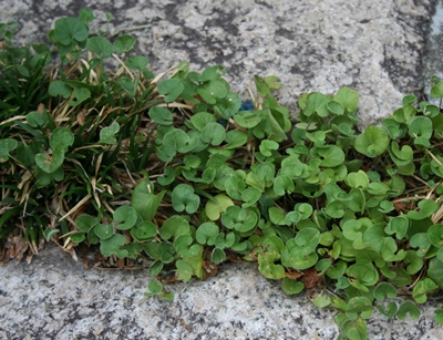 駐車場の目地に植えたのだが、元々あった玉龍が枯れてしまったので緑の補給で植えたつもりだったが、このダイカンドラがメインになってしまった。