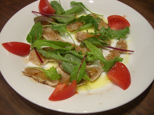 三河地鶏のタタキを買って来たのだが、いつもと違う食べ方、つまりカルパッチョにする事にした。