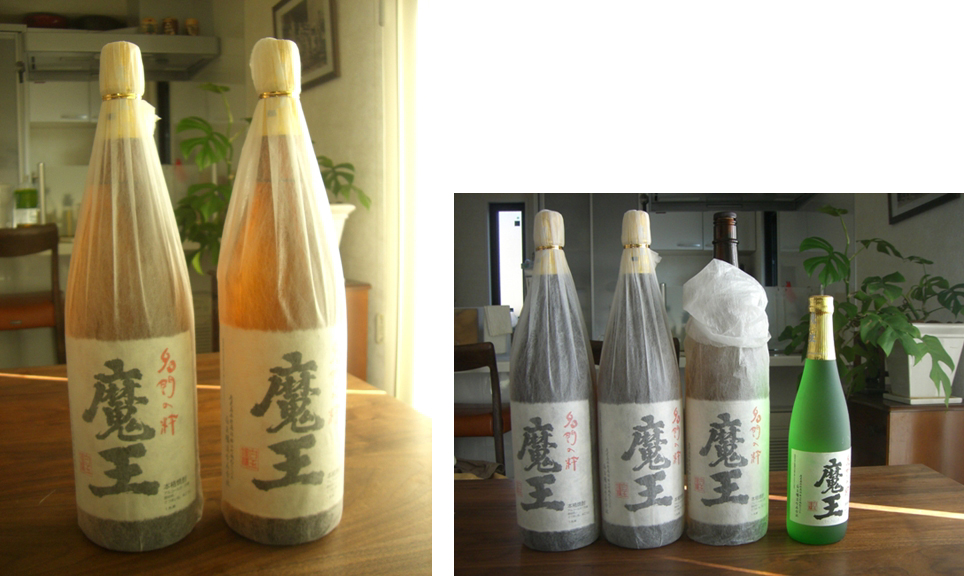 今この魔王をネット又は酒屋で購入すると一升瓶が15,000円前後。4合瓶に至っては8,000円程度する。