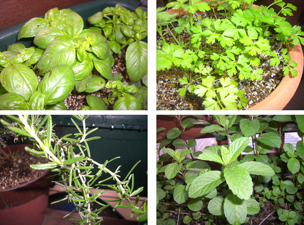 イタリアンパセリとローズマリーは、以前の家の庭に植えてあったのだが、取り壊しの際一苗を鉢に入れていたものが芽を出した。