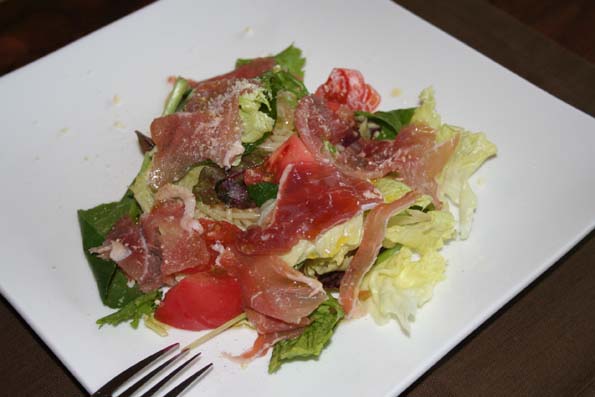 普段は、冷したパスタと具は混ぜ合わせてから盛り付けるのだが、今回は、冷してオリーブオイルで絡めておいたパスタの上に野菜と生ハムを盛り付けた。