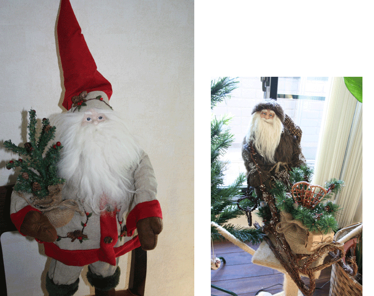 左のサンタはよく見る衣装の白ヒゲサンタである。