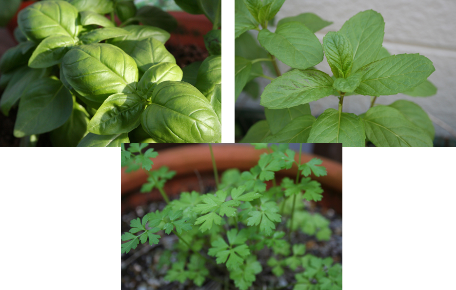 バジル、ミント、イタリアンパセリ、ローズマリーetc。