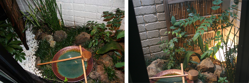 浴室から眺めた坪庭の左右。