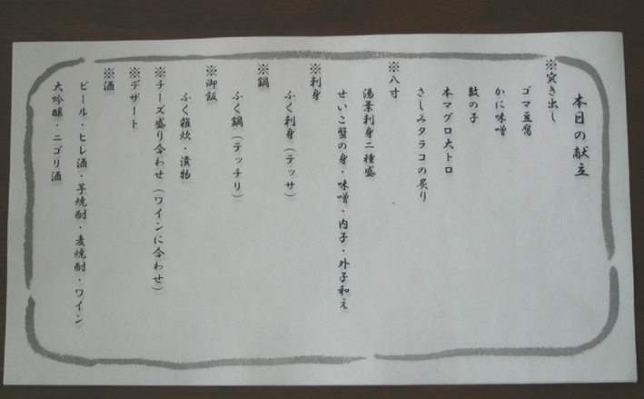 先週土曜日、ブログネタに書いたように、やりました。。おじいちゃんのフグ会席。