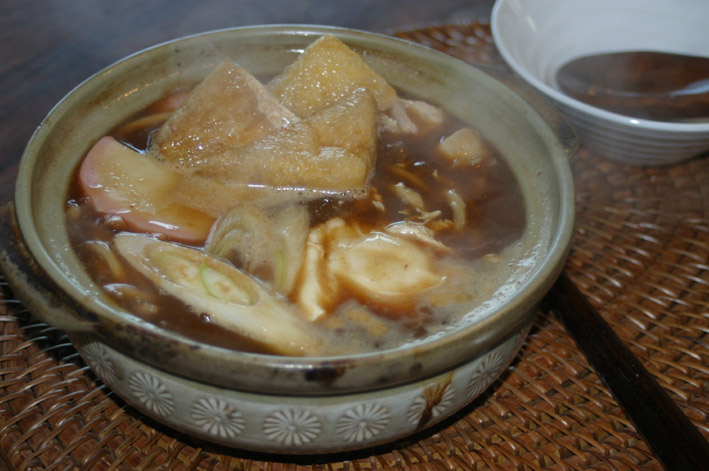 今でも、家で作る味噌煮込みうどんは、鶏(かしわ)、卵、ネギ、かまぼこ、揚げだけである。