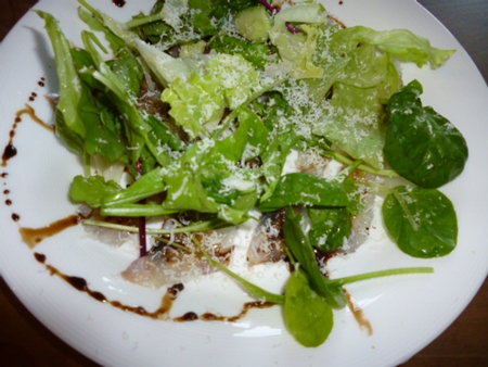 バルサミコ酢と塩コショーで味付けし、その上からオリーブオイルとレモンをかけるだけ。