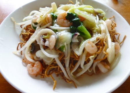 最初の「パリ」って言う食感も良いが、あんかけのタレに馴染んで柔らかくなった揚げそばも美味しい。