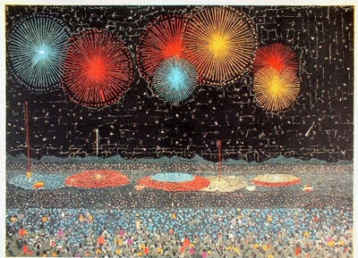 花火の絵と言えば、いつも山下清の貼り絵「長岡の花火」を思い出す。