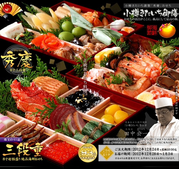 で、今年、、ネットで見た「小樽きたいち」のおせち料理。